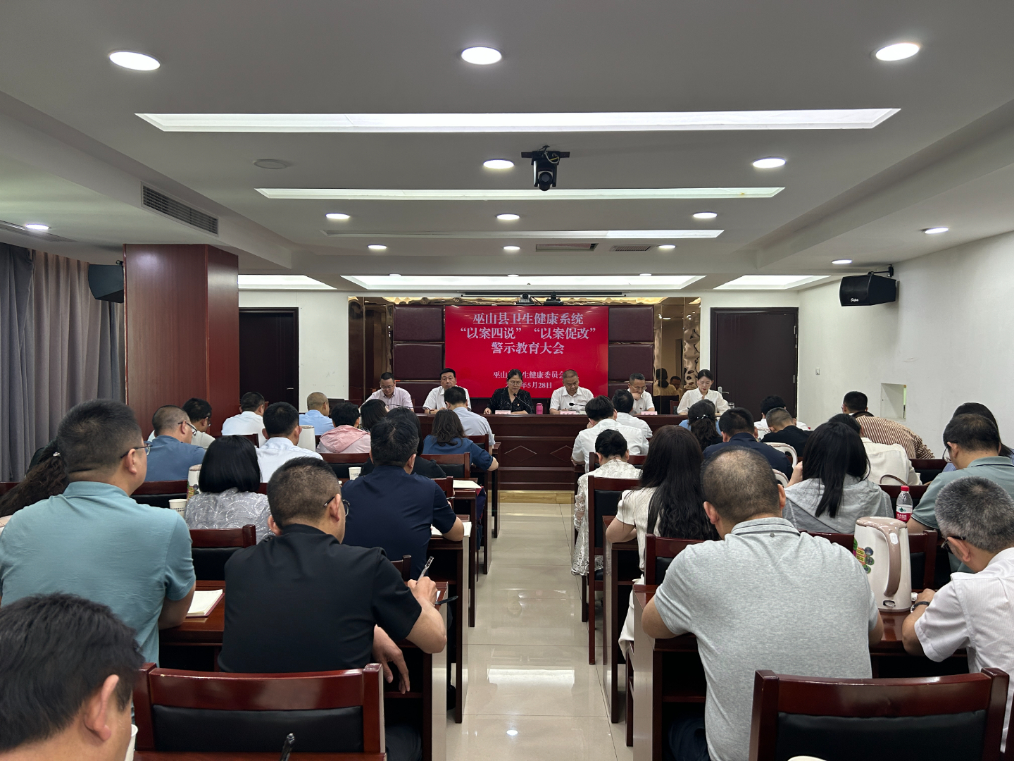 5月28日,全县卫生健康系统召开 “以案四说”“以案促改” 警示教育大会。