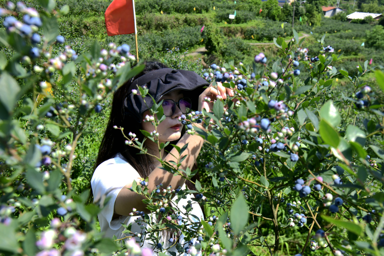 蓝莓园内,随处可见提着果篮、兴致盎然的游客。他们穿梭在蓝莓树丛中,一边品尝一边精心挑选着成熟的果实,体验亲手采摘的乐趣。 “自己摘的蓝莓特别甜!蓝莓树上层的甜下层的酸,喜欢哪种吃哪种,边吃边挑,我觉得很有意思。”游客周媛媛表示。为提升游客体验感,园区还优化了采摘步道,设置了休闲区,并提供蓝莓鲜果、蓝莓酱、蓝莓汁等深加工产品供游客选购。 安育村蓝莓园内600余亩蓝莓成熟。记者 唐斌皓 摄 据了解,扶欢镇安育村蓝莓园成立于2013年。当地海拔600至800米,光照充足、雨量适中、土壤优良,适合蓝莓生长。经过多年悉心培育,如今已成为当地农旅融合发展的一张亮丽名片。2019年,扶欢镇健冠蓝莓合作社成立,带动村民家门口就业增收、增加村级集体收入,后续更是延伸出了蓝莓产业链,发展蓝莓深加工产业,生产出系列高品质蓝莓加工产品。 为推动农旅融合、提升扶欢蓝莓品牌影响力,扶欢镇举办了多届蓝莓采摘节。每至采摘季,生机盎然的蓝莓园便热闹非凡,远近游客慕名而来。据了解,蓝莓园一年接待旅客数万人,有力拉动了乡村经济。 蓝莓园相关负责人表示:“蓝莓采摘期将持续至7月中下旬,欢迎广大游客前来体验采摘乐趣,感受乡村魅力。”