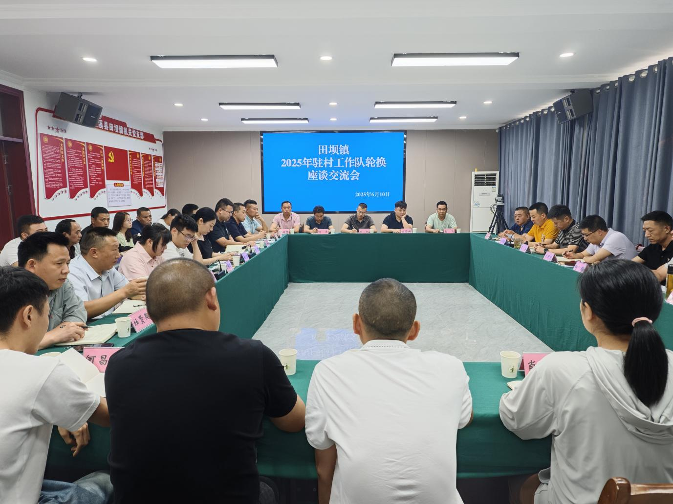 6月10日,田坝镇组织召开2025年驻村工作队轮换座谈交流会。会上,离任队员分享驻村心得。双箭村第一书记黄琼以"解决饮水难、推动产业兴"为例,诠释为民初心;田坝村队员舒显春提出"三入"工作法(入村摸底、入户培情、入心解难)。新任工作队代表熊达勇表态,将以"归零心态"聚焦产业培育、环境整治等任务,跑好乡村振兴"接力赛"。