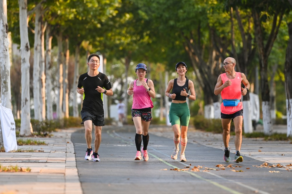 9月1日,两江新区金海湾滨江公园,市民在滨江步道上跑步、骑车健身。
