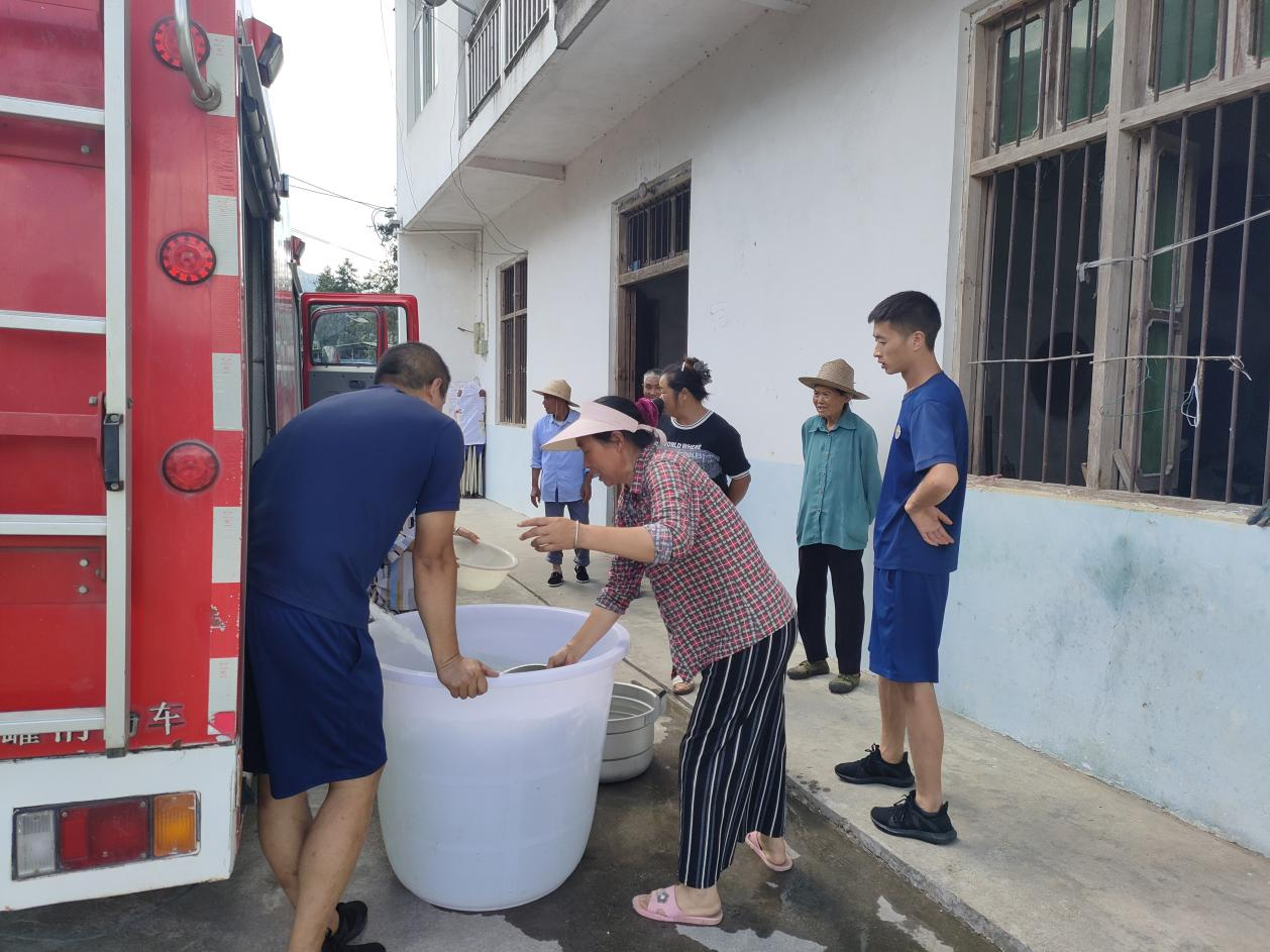 为有效缓解群众用水难题,尖山镇组织专职消防队开展抗旱送水志愿服务活动。消防队员们顶着烈日,驾驶消防车穿梭于各个缺水村社,为枯竭的蓄水池注水,并深入孤寡老人和行动不便的村民家中,直接将清水送到他们手中。截至目前,尖山镇已累计开展上门送水行动10余次,送水量超过110吨,有效解决了40余户、120余名群众的用水困难。