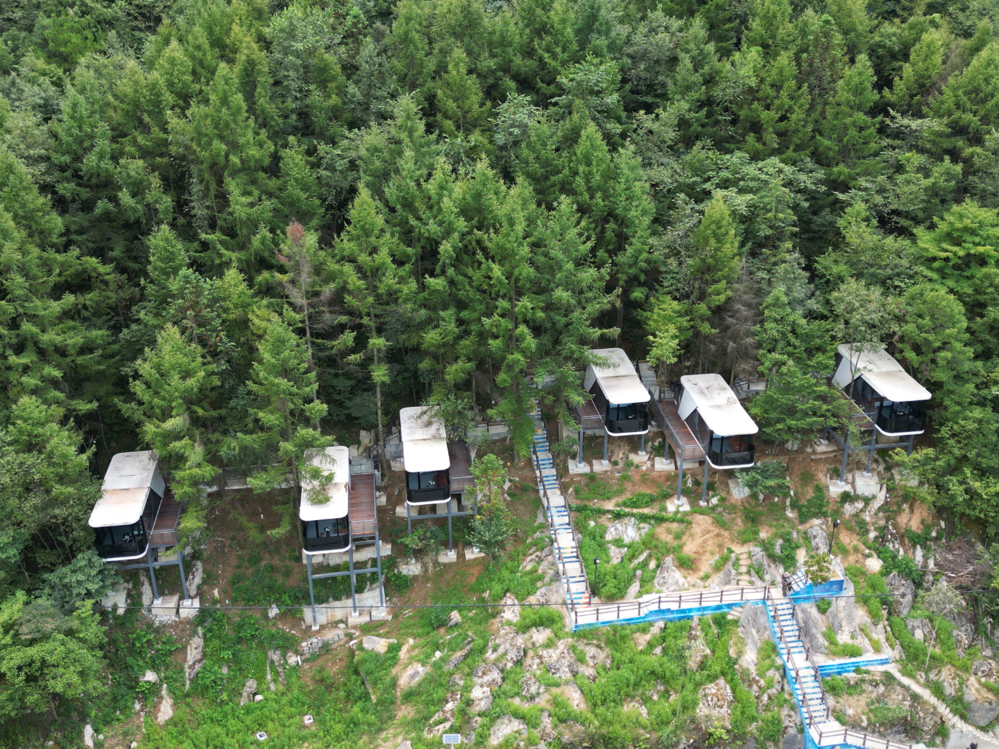 9月3日,记者在骡坪镇大垭村看到,9座“太空舱”错落有致地隐没于山林之间。每幢建筑都设计了全景环绕式落地窗,舱外还有超大露台,无论是独自一人静坐观景还是三五好友品茶聊天,都有绝佳体验。