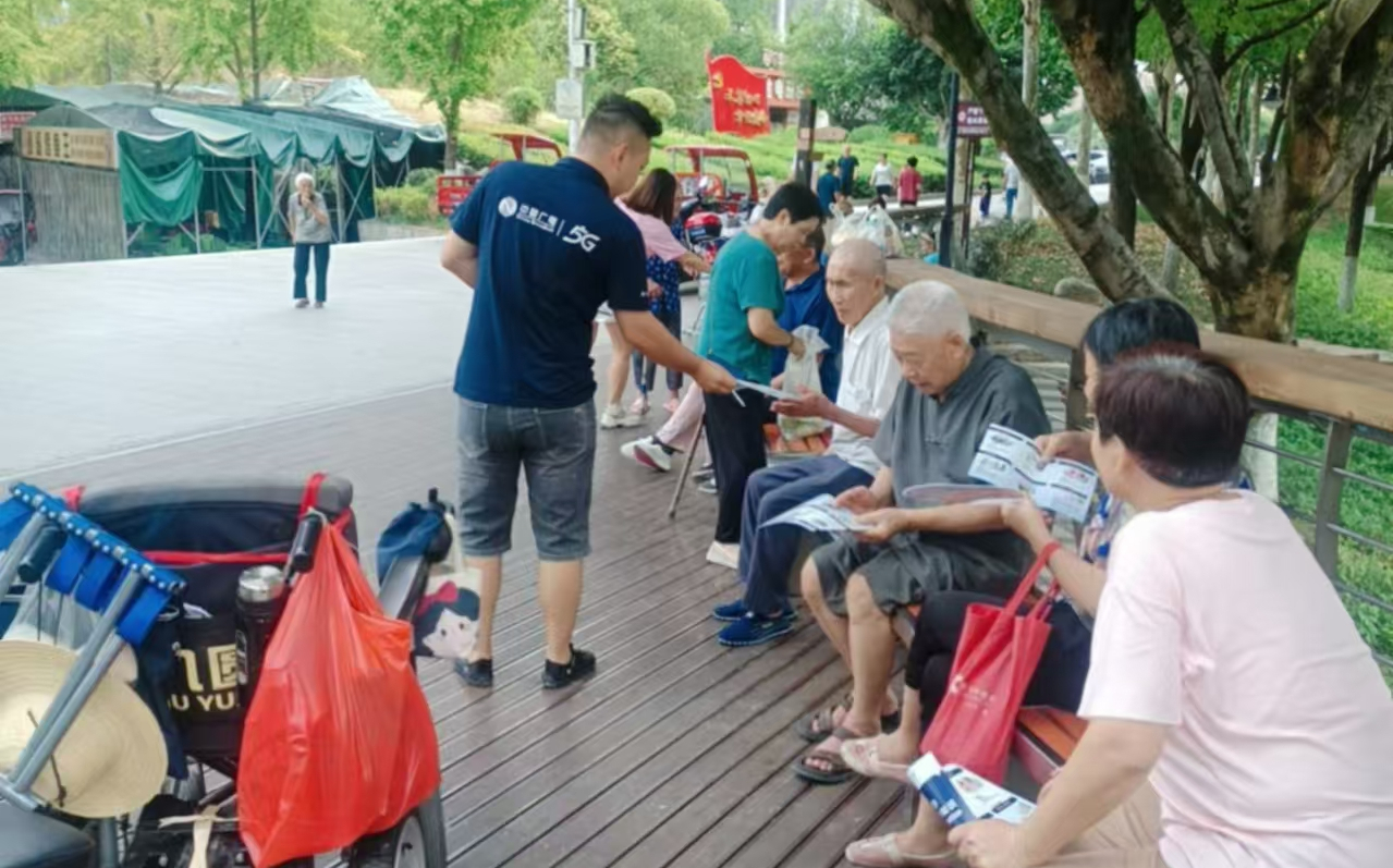 通信企业在逍遥广场悬挂横幅、发放手册,面对面讲解网络安全知识。