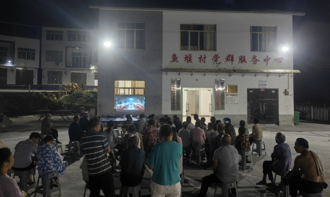 9月12日晚,菱角镇新时代文明实践所在鱼堰村组织开展露天电影放映活动,吸引众多村民家庭参与,现场热闹非凡。