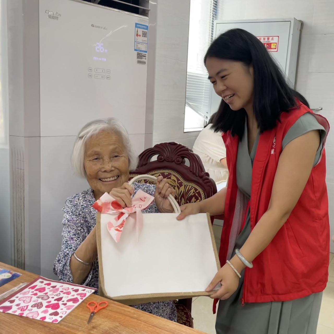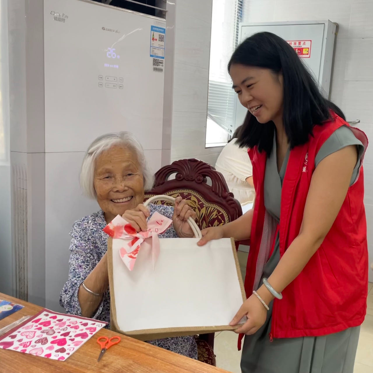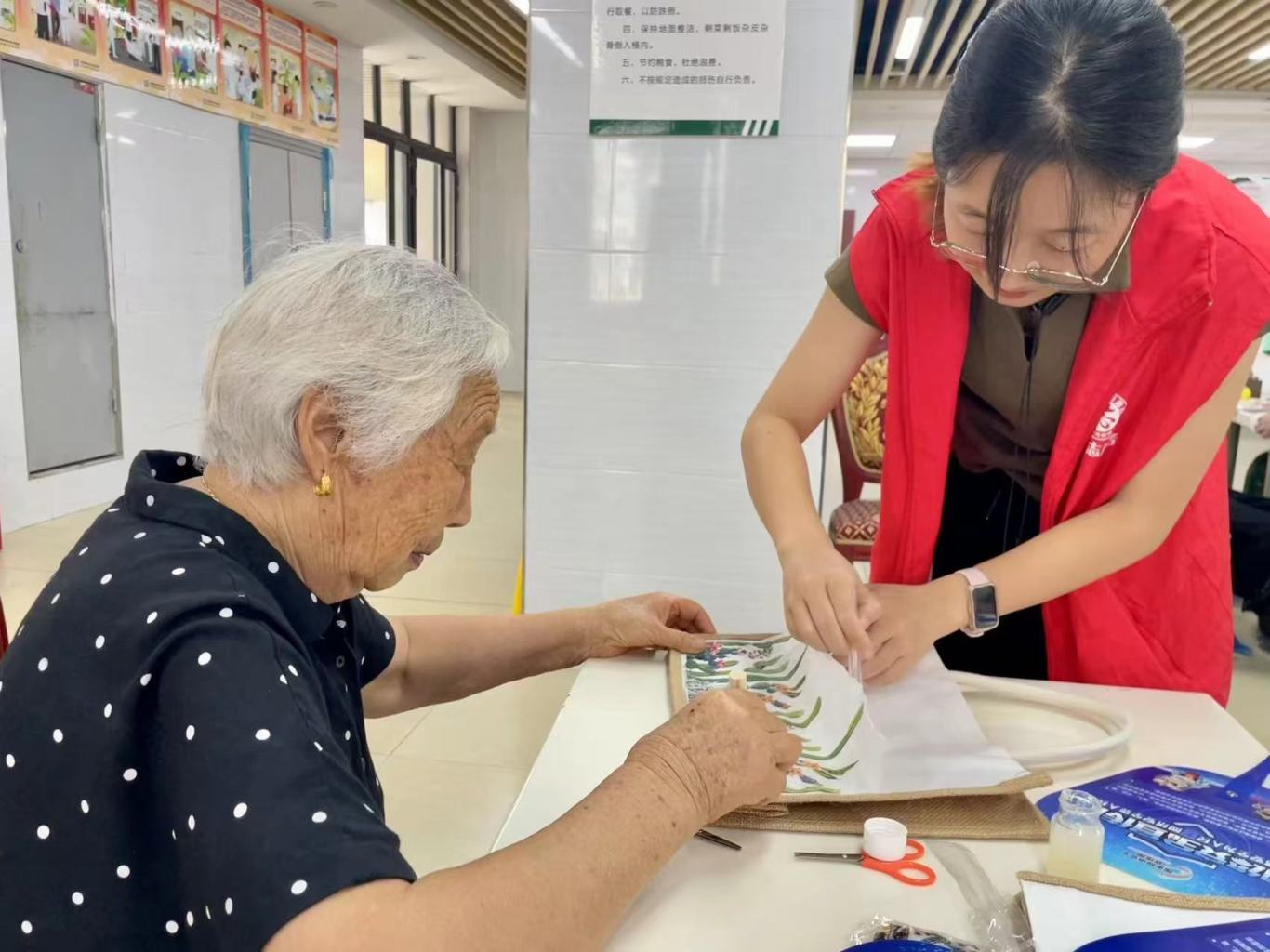 正值中秋佳节来临之际,团县委联合丰益社区、心连心社会服务中心走进颐养老年公寓,开展 “喜迎中秋・乐享养老” 暨网络安全宣传周活动,与老人们共度中秋。活动现场,志愿者为老人讲解网络安全知识,教其守护钱袋子。在 DIY 环节,志愿者与老人一起动手创作环保袋,老人们笑容满面。王奶奶表示很高兴,感受到社会的温暖。(通讯员 文敏 李永玲)