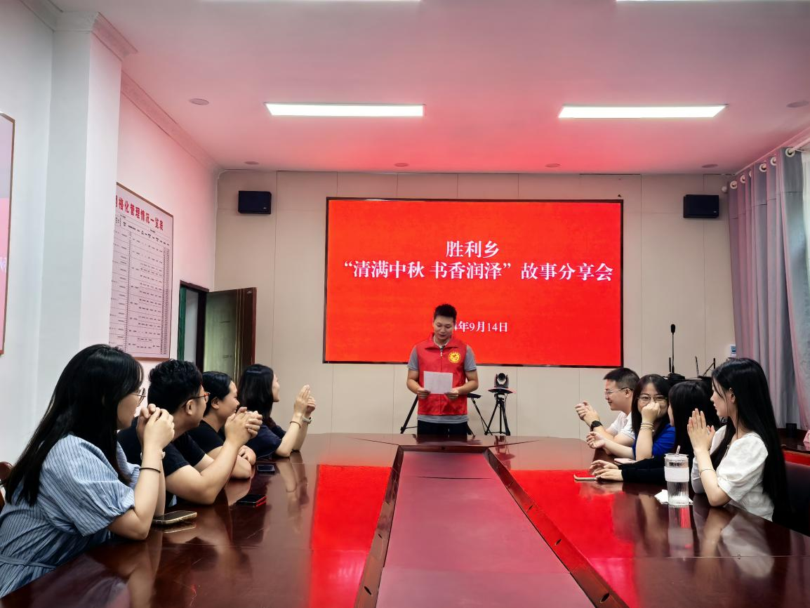 9月14日,胜利乡新时代文明实践所组织年轻干部开展 “情满中秋 书香润泽” 故事分享活动。活动中,青年干部分享了《嫦娥奔月》《中秋月饼》《玄宗游月》等中秋主题民俗故事,品味传统文化,重温中秋民俗文化,增强民族自豪感和文化自信,丰富日常生活。这场活动让年轻干部回忆起童年快乐时光,加深了对中秋节的理解和认识,更加明白其文化内涵和价值观,进一步传承了中华优秀传统文化。(通讯员 李金蓉)