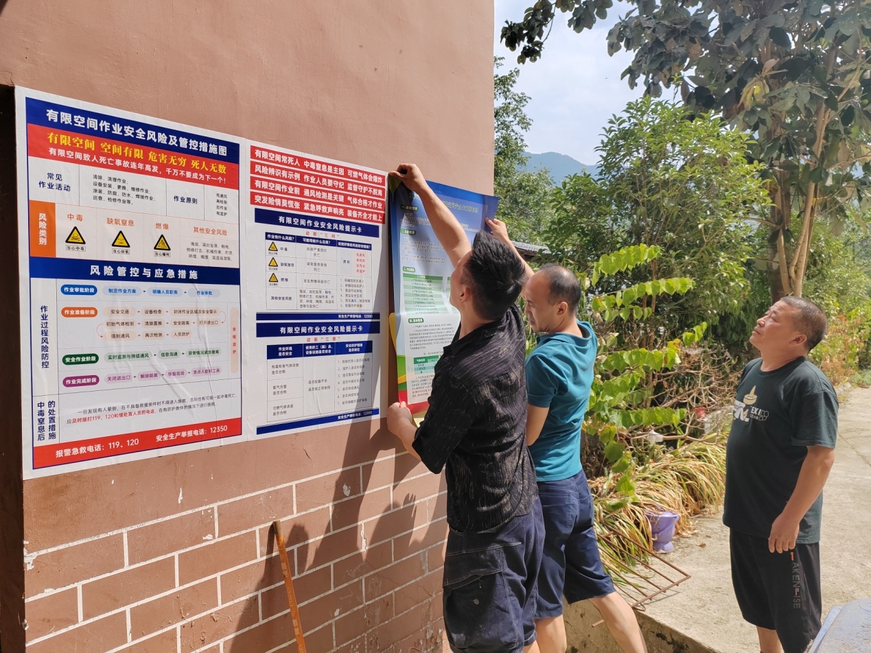 摸清空间底数。为全面摸清辖区有限空间情况,治平乡发动党员干部、村(社区)工作人员、网格员对辖区有限作业空间逐一排查,梳理有限空间台账。针对排查出的有限空间,统一制作并安装醒目的警示标志,明确标注“有限空间,严禁擅自进入”等警示语,以提醒过往人员注意安全。