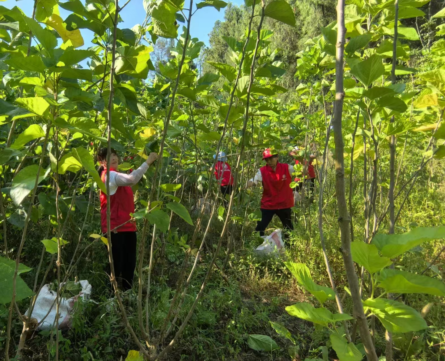 活动中,志愿者们满怀热情,携带编织袋、镰刀等工具深入田间地头。他们默契配合,有的挥镰收割,有的俯身采摘桑叶,还有的细心清除杂草,展现了极高的劳动热情和团队精神。在这片繁忙的景象中,志愿者的红色身影成为了田间最动人的风景线,有效缓解了当地养蚕大户的劳动力短缺问题,为农民增收、农业增效贡献了力量。