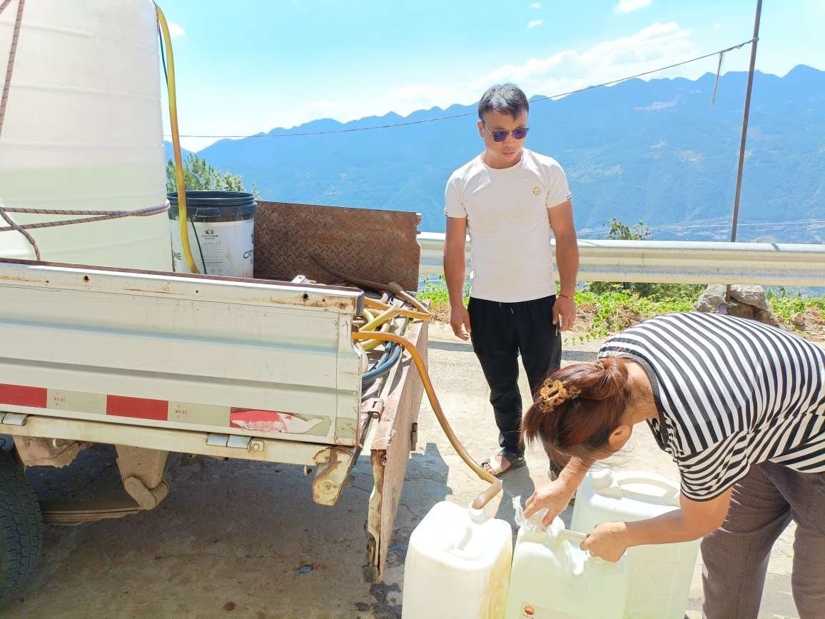 在凤凰镇石龙村,群众看到送水车,纷纷准备好水盆、水桶来装水,工作人员则热情地帮助居民搬水,对于行动不便的老人和残疾人,工作人员主动将水送到家中,确保每位群众的基本生活用水需求得到满足。
