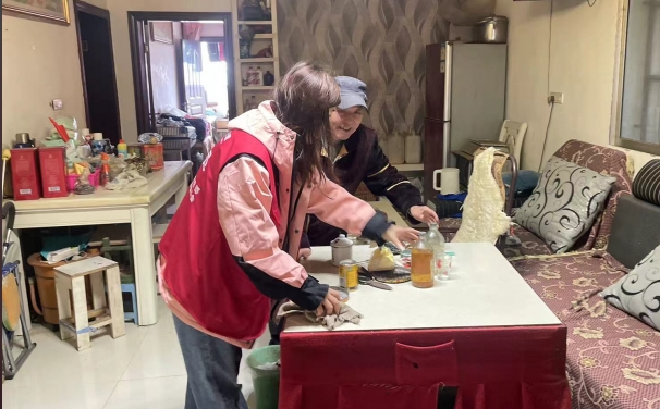 清晨,志愿者们手持抹布和扫帚,有序开展工作,清理灰尘、整理杂物、擦拭窗台和家具。在清洁的同时,志愿者们还与老人们亲切交谈,了解他们的生活状况和健康情况。