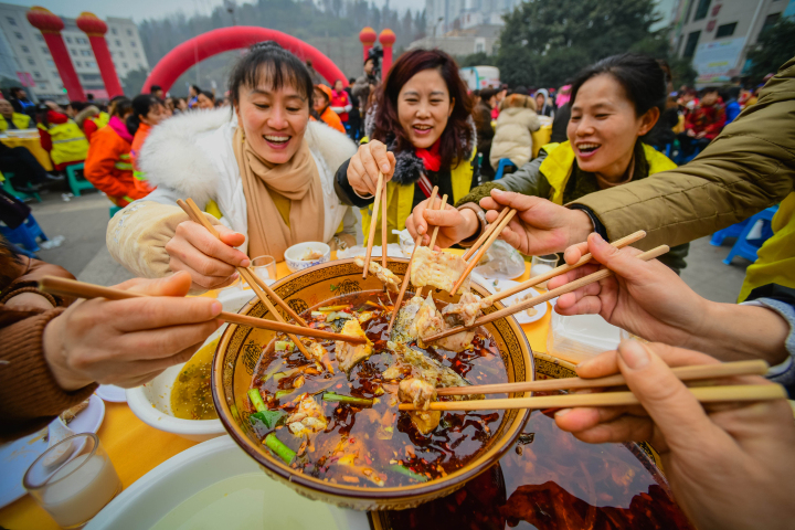 市民开心品尝北渡鱼。记者 陈星宇 摄