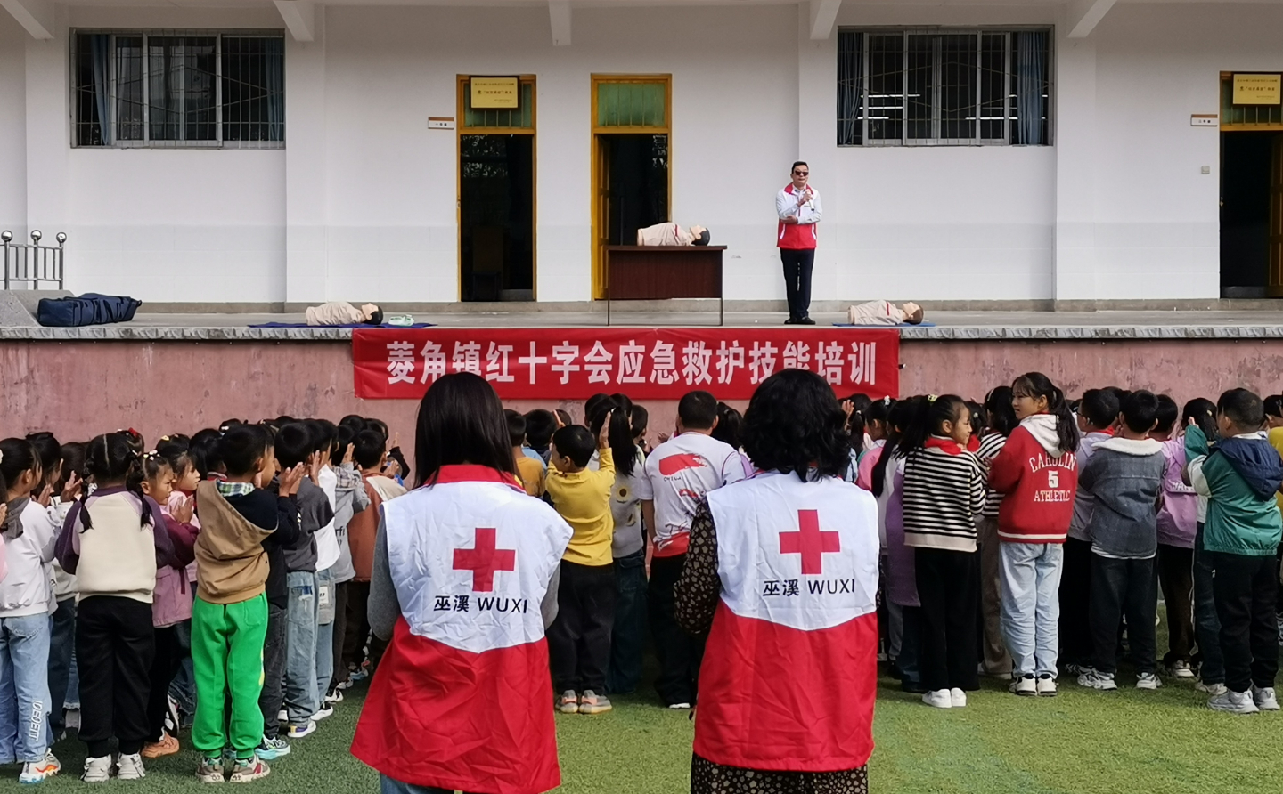 10月14日,菱角镇新时代文明实践所、红十字会联合卫生院及大同小学,共同开展应急救护技能培训。