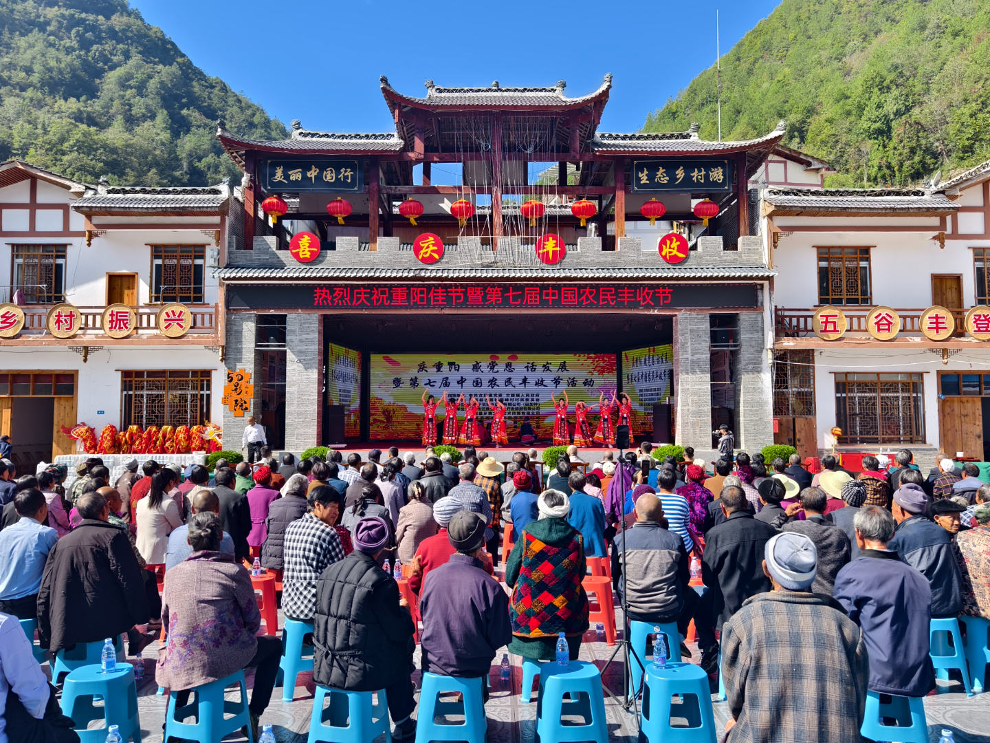 人间最美是金秋,五谷飘香乐丰收。10月15日,古路镇观峰村举办“庆重阳 感党恩 话发展”农民丰收节活动,村民们晒特产、展民俗、演歌舞,歌颂劳动、礼赞丰收,欢庆第七个中国农民丰收节,共享丰收喜悦。