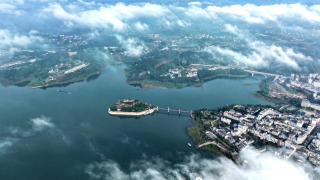 10月24日上午,长江忠县石宝镇段云雾升腾。无人机俯瞰,石宝寨在一江碧水间若隐若现,恰似“海市蜃楼”,美轮美奂。