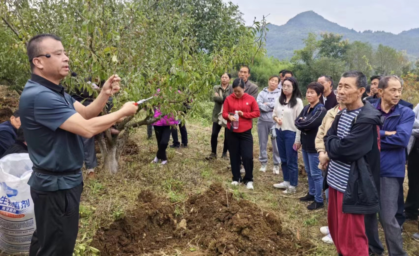 “‘枝丫一响,黄金万两’,脆李的冬管主要包括定型、修剪、刷白、清园等。在脆李开展冬剪之前,先要对脆李树做好拉枝定型。修剪时,保留提水枝,株与株之间不要交叉重叠。”在杨坝村,技术人员现场一边讲解,一边示范,种植户听得津津有味。同时技术人员还围绕秋季脆李除草清杂、树盘覆盖、有机肥施用和病虫害防治等关键环节,进行详细讲解与示范,确保种植户们能掌握科学的管护方法。
