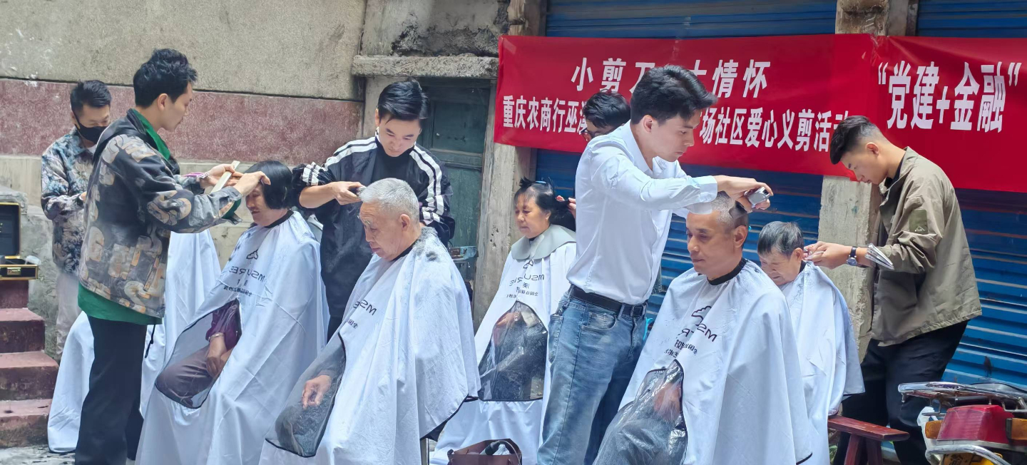 近日,宁河街道广场社区联合重庆农商行巫溪支行开展“小剪刀 大情怀”爱心义剪志愿服务活动,为辖区居民免费理发。