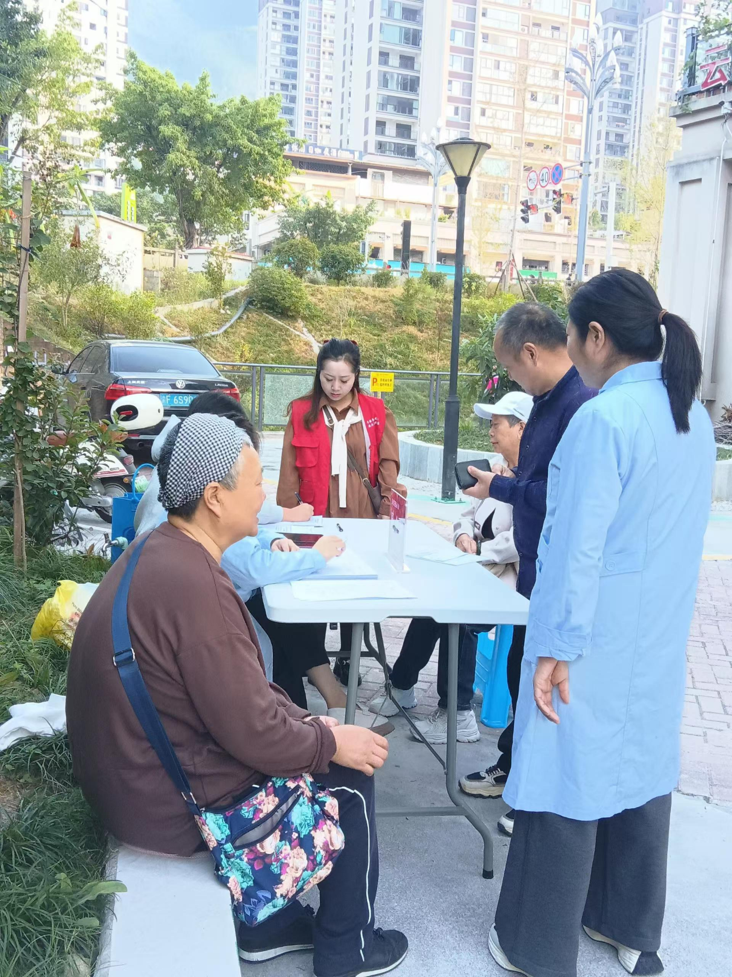 10月30日,柏杨街道卫生服务中心在百杏苑小区举办免费健康体检活动。