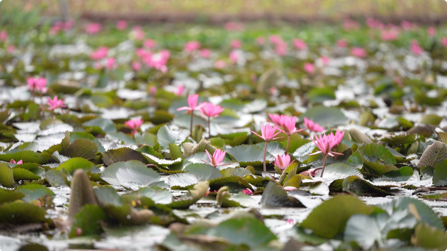 据介绍,西施红莲生命力极其旺盛,即便深秋霜寒,依然能保持良好的生长状态和盛开状态。秋冬季节,工作人员会加大对湿地公园的巡查和维护力度,密切留意红莲生长状况,及时清理水面杂物,确保水质清洁,为红莲营造更优质的生长环境,从而打造别具一格的深秋美景。