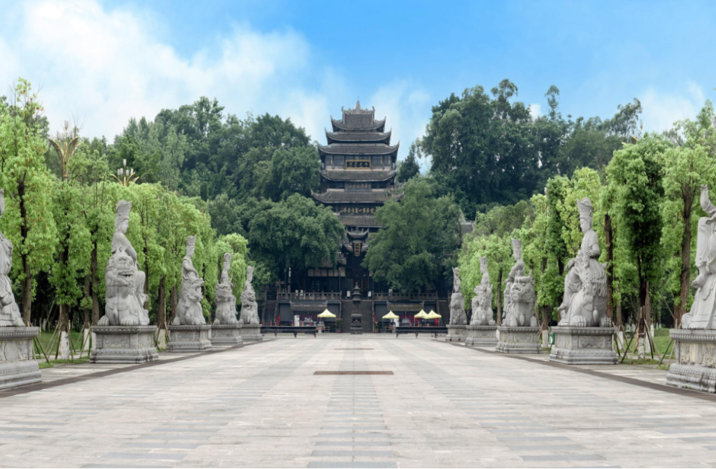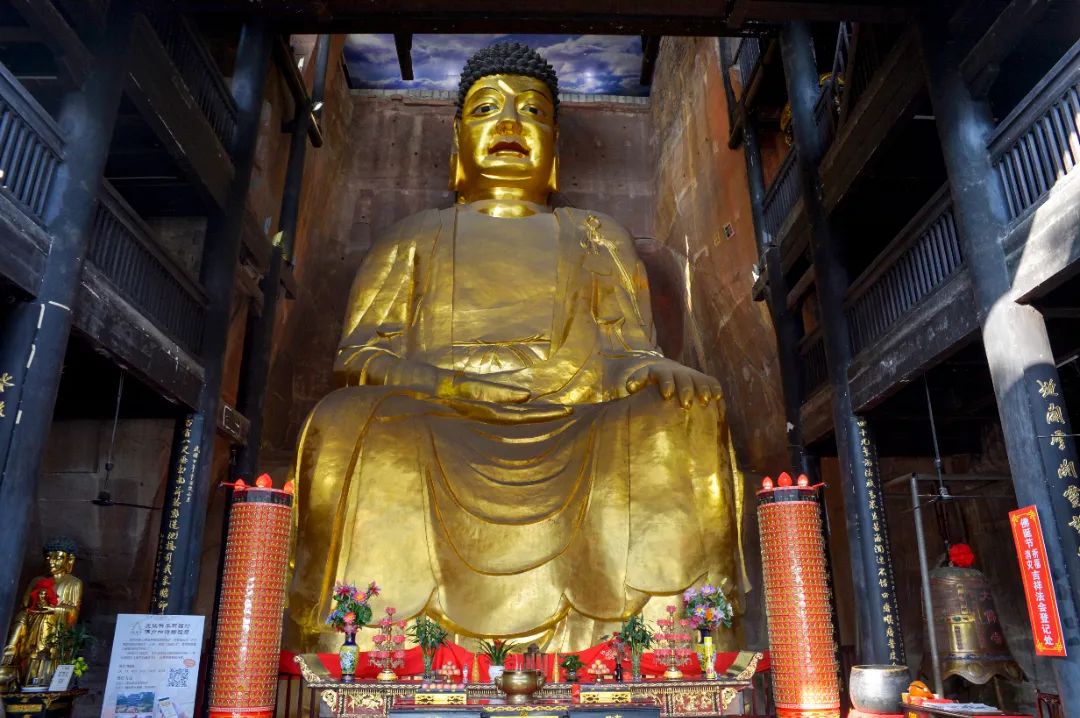 潼南大佛寺世界第一室内饰金大佛是全国重点文物保护单位,国家AAAA级景区。寺内保存有始于隋、盛于唐宋、继于明清、迄至民国,延续时间1400余年的儒、释、道三教造像126龛928尊。以金大佛最负盛名,高18.43米,被誉为“金佛之冠”。