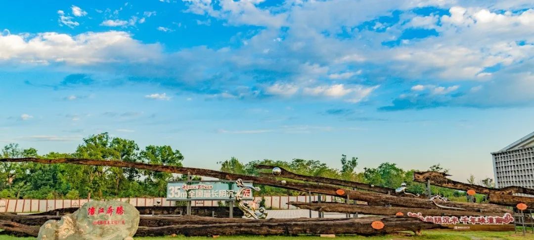 潼南还打破传统的“隔着玻璃窗”看展的形式,建成“涪江奔腾 阴沉木文化广场”,让市民游客“零距离约会”千年古木,感受潼南生态文化遗产。文化广场占地面积1000平方米,经有关权威部门及专家考证是全国最大的阴沉木广场之一。目前有千年阴沉木33根,其中最长的达35米,是全国迄今为止最长的阴沉木,年代最久远的达4千年左右,其余均在千年以上品种有金丝楠木、重阳木红椿木、麻柳木等。