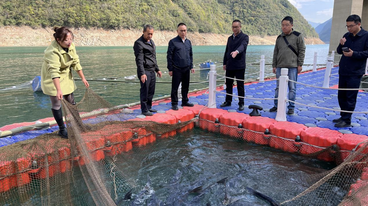 在随后的座谈会上,重庆两江生态渔业发展有限公司表达了与中梁乡深入合作的强烈意愿,表示将在基础设备设施建设、鱼苗培育、循环养殖、远程运输、鱼产品开发等方面加大投入,运用科技手段提升养殖效率,拓宽销售渠道,推动中梁湖生态鱼进入高端消费市场。