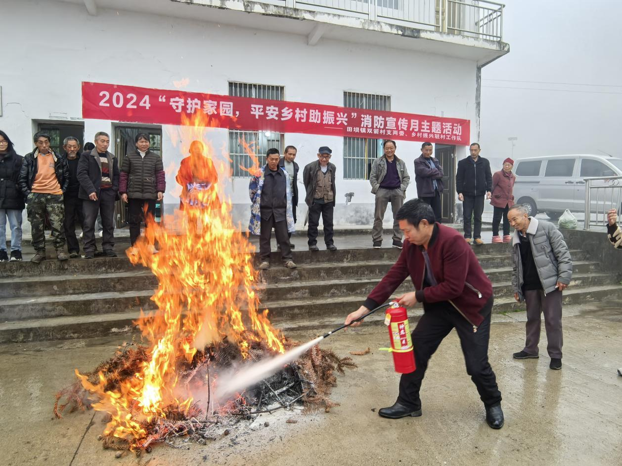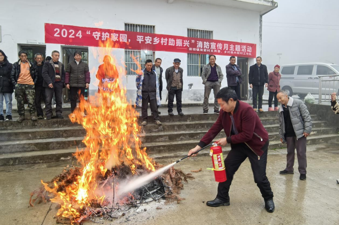 11月12日,田坝镇双箭村村支两委与驻村工作队联合尖山镇专职消防队、田坝镇消防工作站及新时代文明实践所,共同举办2024年“守护家园,平安乡村助振兴”消防宣传月主题活动,旨在强化农村消防安全,提升村民自救能力。