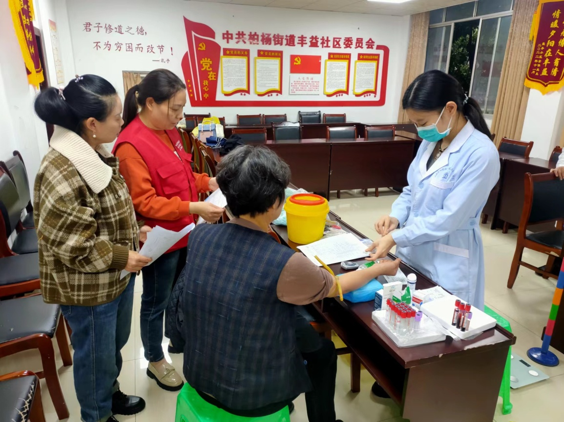 活动当天,志愿者在丰益社区设立服务站点,免费为居民测量血压和血糖。他们耐心询问居民的身体状况,并根据测量结果给出个性化的健康建议。并引导居民保持良好的饮食习惯,远离高脂、高糖食品,实现平衡膳食,定期进行体检,以对自己的身体健康负责。