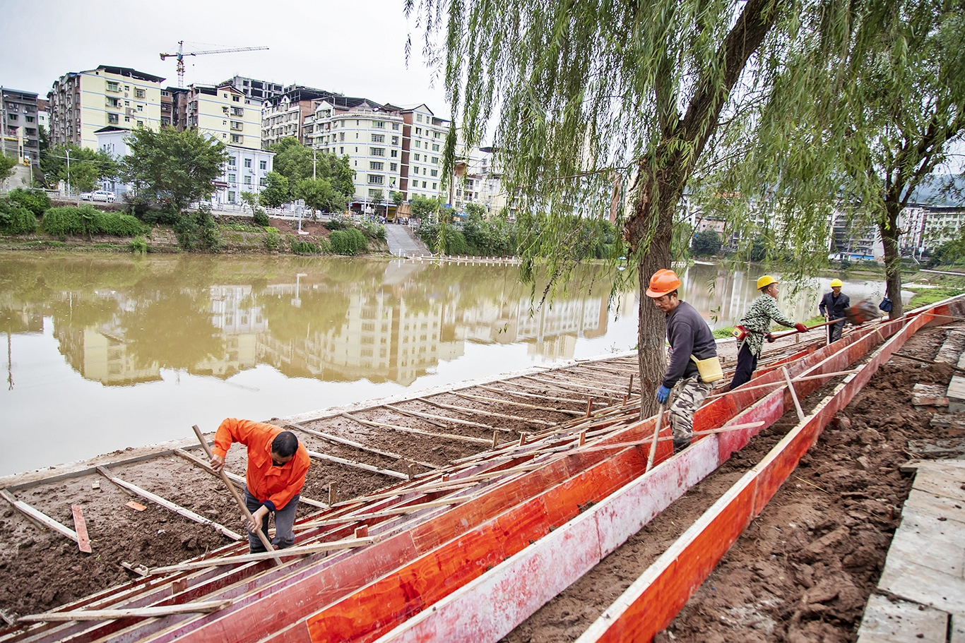 滨河旅游步道改造施工现场。 记者 余鸿 摄