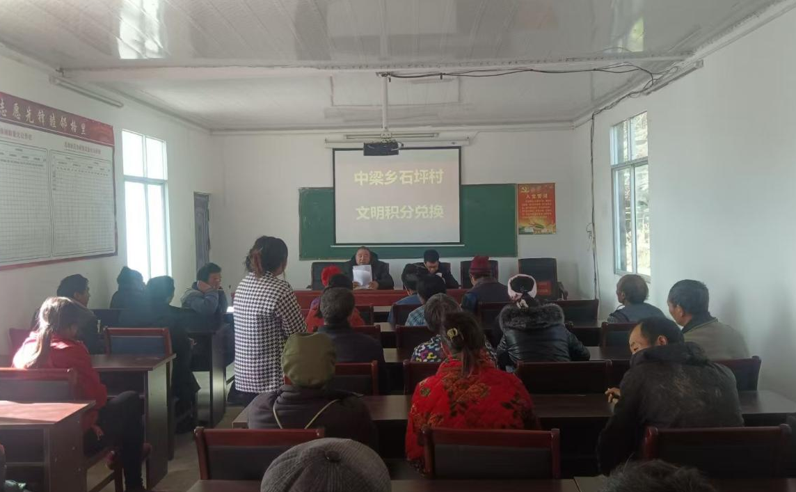 11月26日,中梁乡石坪村积分超市举办了一场文明积分兑换活动。