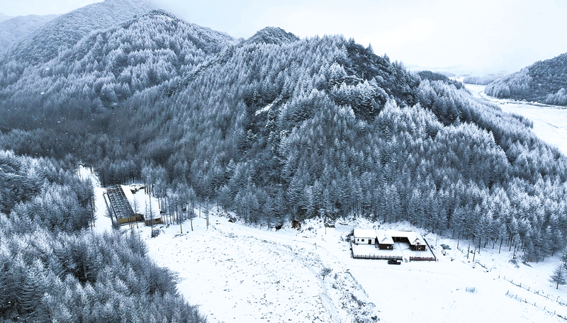 受新一轮寒潮影响,从11月23日下午开始,重庆雪宝山国家级自然保护区迎来今冬首场降雪,纷纷扬扬的雪花将大地装点一新,好似冰雪的童话世界。