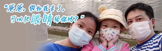 在采访的最后,我们和刚做完化疗的小红颖说上了话。在被问及为什么要把眼睛换给爸爸时,她用稚嫩的声音回答:“因为我很爱爸爸,爸爸在我心里一直是最厉害的人,我想用这种方式继续守护爸爸。”