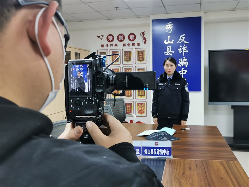 一台相机、两名“演员”、一个剧本,你看到的现场不是在拍电视剧,也不是哪位网红在拍“段子”,而是县公安局反诈骗中心在拍宣传视频。视频中,由两名女民警“扮演”的人物角色,正在通过幽默搞笑的表演,还原日常生活中各类电信诈骗骗局。尽管两名女民警都不是专业演员,但是面对镜头,她们的“表演”却毫不逊色。