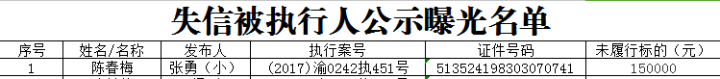 酉阳自治县人民法院独家提供失信被执行人名单,授权酉阳报社旗下《酉名堂微信公众号》《酉州城事APP》两大平台专设“法院执行”专栏予以发布,以此搭建起法院与人民群众之间互动交流的新媒体桥梁和全新的司法监督新平台。已还款的失信被执行人名单将在7日内删除,请大家及时关注。