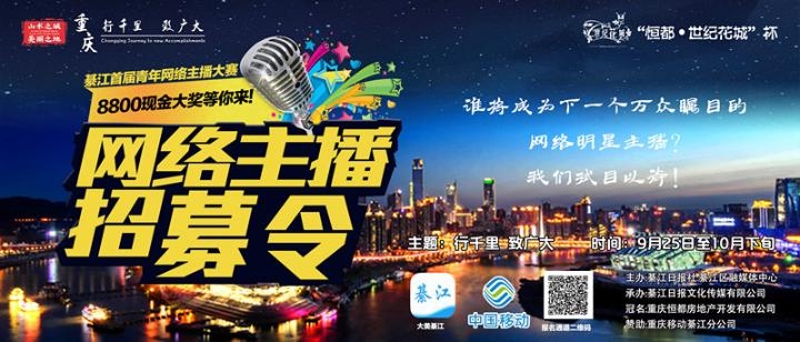 另外,主办方还将从中推选2名优秀主播代表綦江参加重庆首届青年网络主播大赛复赛、决赛,并有机会成为重庆市青少年新媒体中心、华龙网签约主播,获得中国传媒大学播音主持艺术学院副教授宋晓阳的亲笔推荐信。