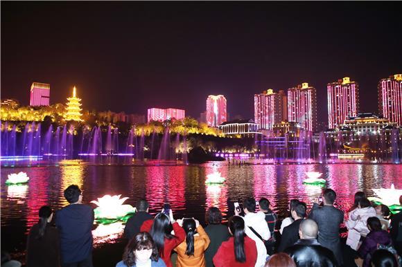 市民打卡兴龙湖灯光秀。通讯员 陈仕川 摄