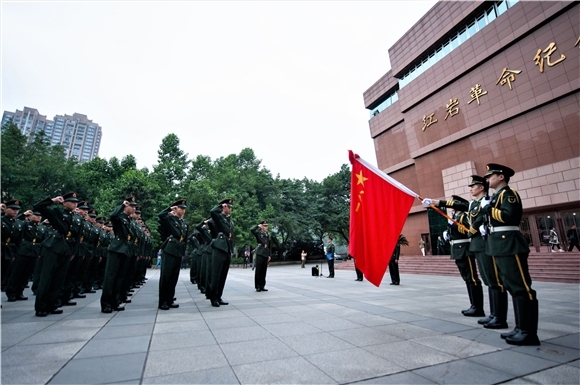 上午10时,在鲜红的“八一”军旗前,面对红岩革命先辈,官兵们高举右手,郑重宣誓。铿锵有力的誓言在山峦间回荡,犹如嘹亮的冲锋号,凝聚起磅礴的强军兴军意志和力量。