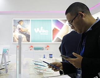 观展人员体验各种新款手机。记者 李裕锟 摄
