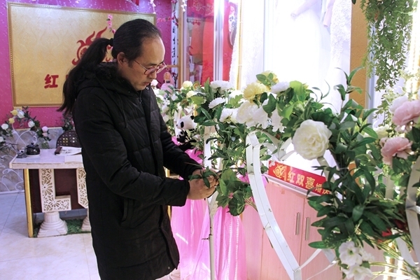 近日,记者来到社坛镇,打听到侯东发在场镇上开了一家属于自己的婚庆店。在婚庆店,侯东发正在整理平时所使用的道具。当表明来意后,侯东发放下手中的事情与记者攀谈起来。
