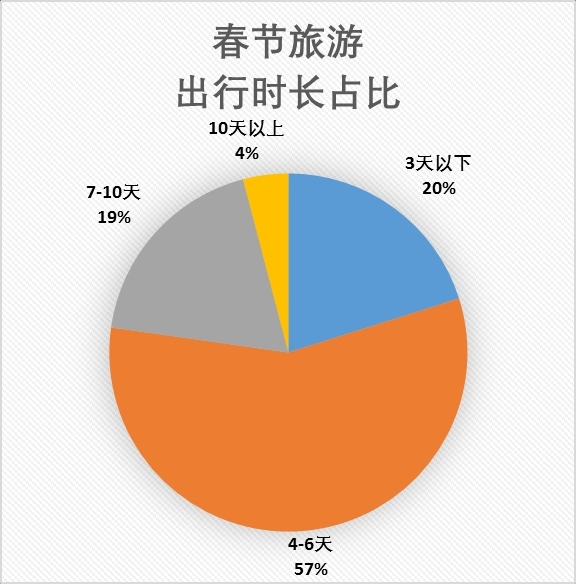 春节的公共假期有7天,游客会如何选择一段多长时间的行程?数据显示,游客选择了7天以下行程的占比最高,达到了77%,大多游客会在假期时间内规划自己的旅程。而选择7天以上行程的游客也不少,占比达23%,拼假出行也成为了游客的重要方式。