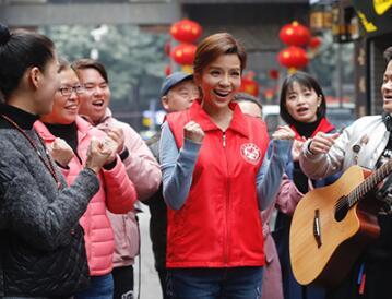“学习雷锋好榜样,忠于革命忠于党。”清澈悦耳的歌声响起,镜头对准了身着红色志愿者马甲的央视主持人朱迅,在她的歌声带动下,不少市民跟在她的身旁,一起唱起了这首脍炙人口的歌曲。