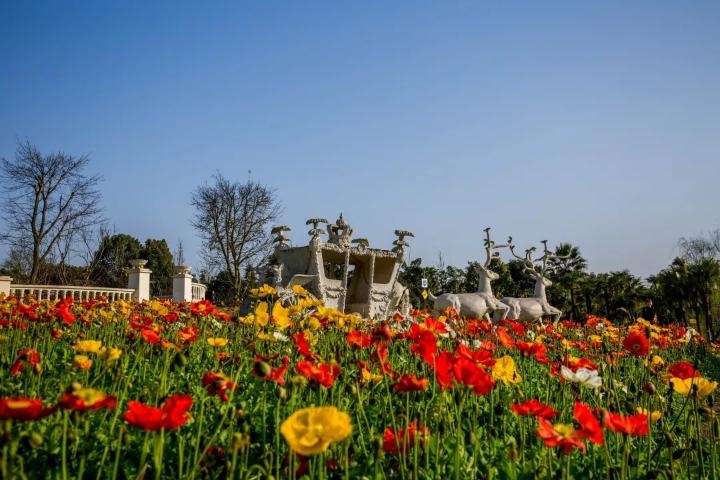 景区由花木观赏区、园林科普体验区、主题摄影区等七个区域组成。种植有玉兰、红叶李、美人梅等近100个花卉品种,还可露营、烧烤。