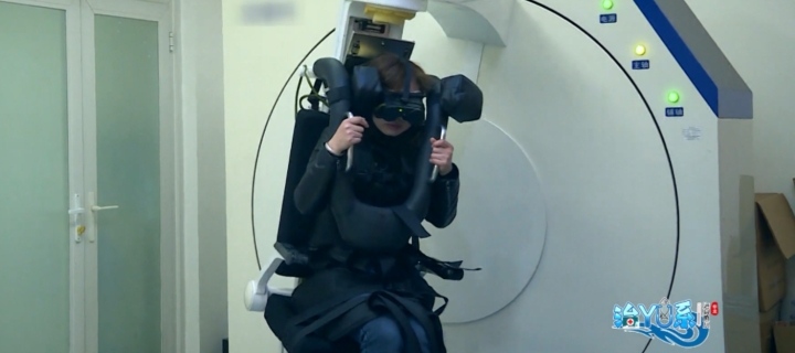 听完医生的介绍,李阿姨来到治疗室,她坐到一个像太空舱的椅子上,被8条安全带稳稳地固定起来,戴上一个红外眼罩,看起来非常炫酷。