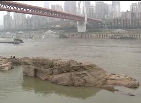 长江边,两条百多米长的顺江石梁,形如卧龙,将流经于此的江水一分为二,这便是重庆人熟知的龙门浩。而其中最引人注目的,是刻着“龙门浩月”四个红色大字的“神龟”巨石。记者在现场看到,多年来大部分主体都藏身于水下的“神龟”,几乎整体露出了江面。不少市民和摄影爱好者纷纷赶来,一堵这难得一遇的奇景。