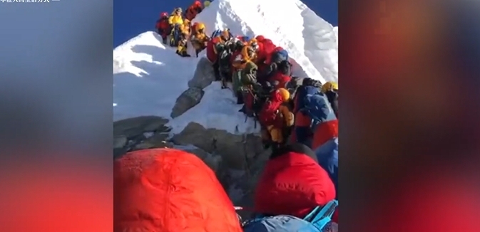 珠穆朗玛峰发生了“大堵车”,8000米以上的“死亡区”,200多登山队员在山脊上排着长队。