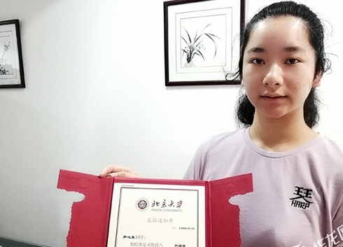 罗心麦收到了来自北京大学外国语学院俄语专业的录取通知书。 华龙网-新重庆客户端记者 尹建红 摄