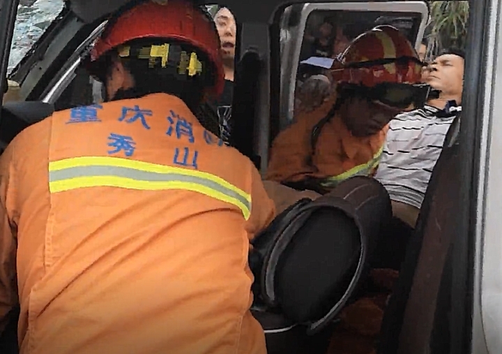 华龙网-新重庆客户端8月3日16时讯(记者 李华侨)8月2日12时41分,在秀山县石堤镇一山路拐弯处发生一起车祸,其中有一名驾驶员被困。接警后,秀山消防大队立即赶往现场,快速展开救援,最终成功将被困人员救出。