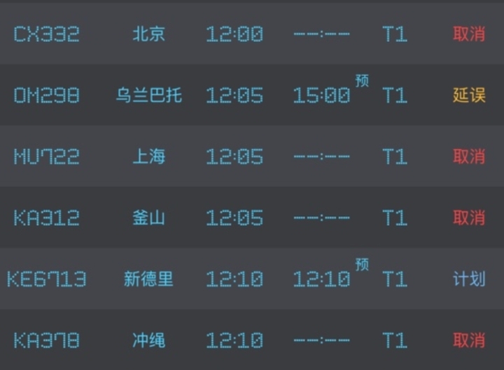 东方网记者查询了香港机场进出港航班,发现仍有相当部分航班处于“取消”或“延误预警”的状态,不少国内外城市均受到影响。截至东方网记者发稿时,国内方面,北京、上海、、武汉、南京、无锡、台北、台南等地多个航班显示“取消”。国外方面,福冈、名古屋、釜山等城市受到影响。