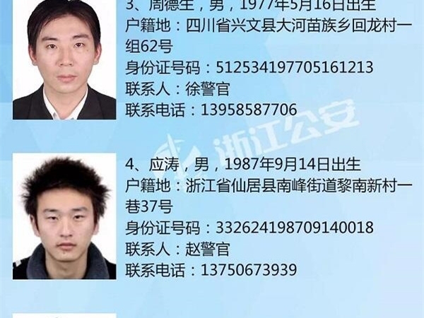 浙江在线杭州讯(浙江在线通讯员 陈谊 记者 贾晓雯)9月9日,记者从浙江省公安厅获悉,省公安厅对案件性质严重、社会影响恶劣的50名重大在逃人员公开悬赏通缉。浙江省公安厅呼吁广大群众积极举报在逃人员线索,发现有关情况的,请及时拨打110报警或联系经办民警。对提供有效线索,为抓捕工作发挥关键作用的人员,公安机关将给予人民币5000元奖励,并做到严格保密。