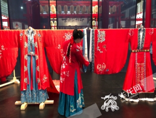 首次参加造物节,黄春燕告诉华龙网-新重庆客户端记者,放在中央展示的便是价值上万的古代婚服,前后用了300多个工期的时间,全部是真丝面料手工制作,1500万针以上。黄春燕说:“希望通过造物节让更多人了解汉服。”如今,汉服已经销往了英国、法国等国家。