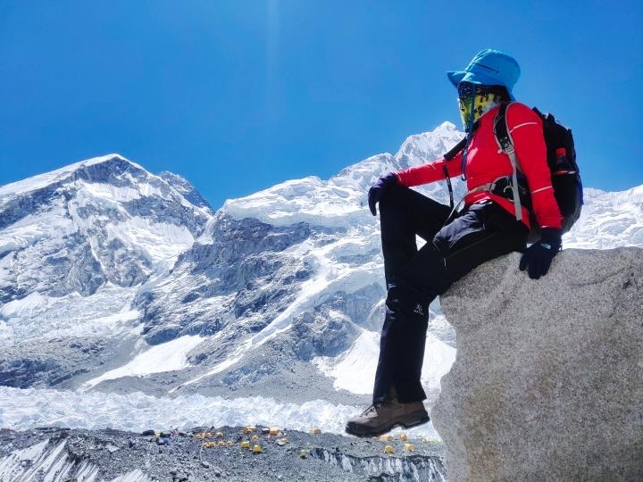 为了这次登山,早在一个月前,何鸿鹄就从重庆出发,经成都飞往尼泊尔,然后转乘直升机抵达海拔2840米的位于尼泊尔的卢卡拉机场。为了让身体逐步适应高海拔,她徒步进入珠峰地区,每天步行约七八个小时,走了六天,抵达海拔5364米的珠峰大本营。